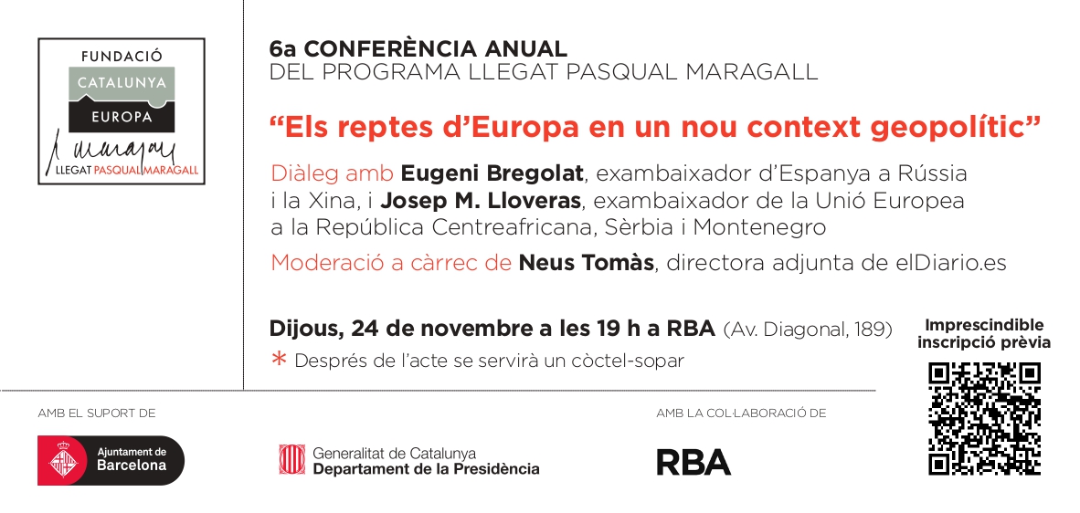 El dijous 24 de novembre es va celebrar la conferència anual de la Fundació Catalunya Europa - Llegat Pasqual Maragall, a l'auditori de l'editorial RBA de Barcelona.