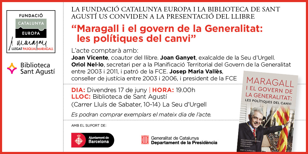 La Fundació Catalunya Europa i la Biblioteca de Sant Agustí han presentat “Maragall i el govern de la Generalitat: les polítiques del canvi”, un llibre que recórrer les polítiques de Pasqual Maragall durant la seva etapa com a president del govern català.