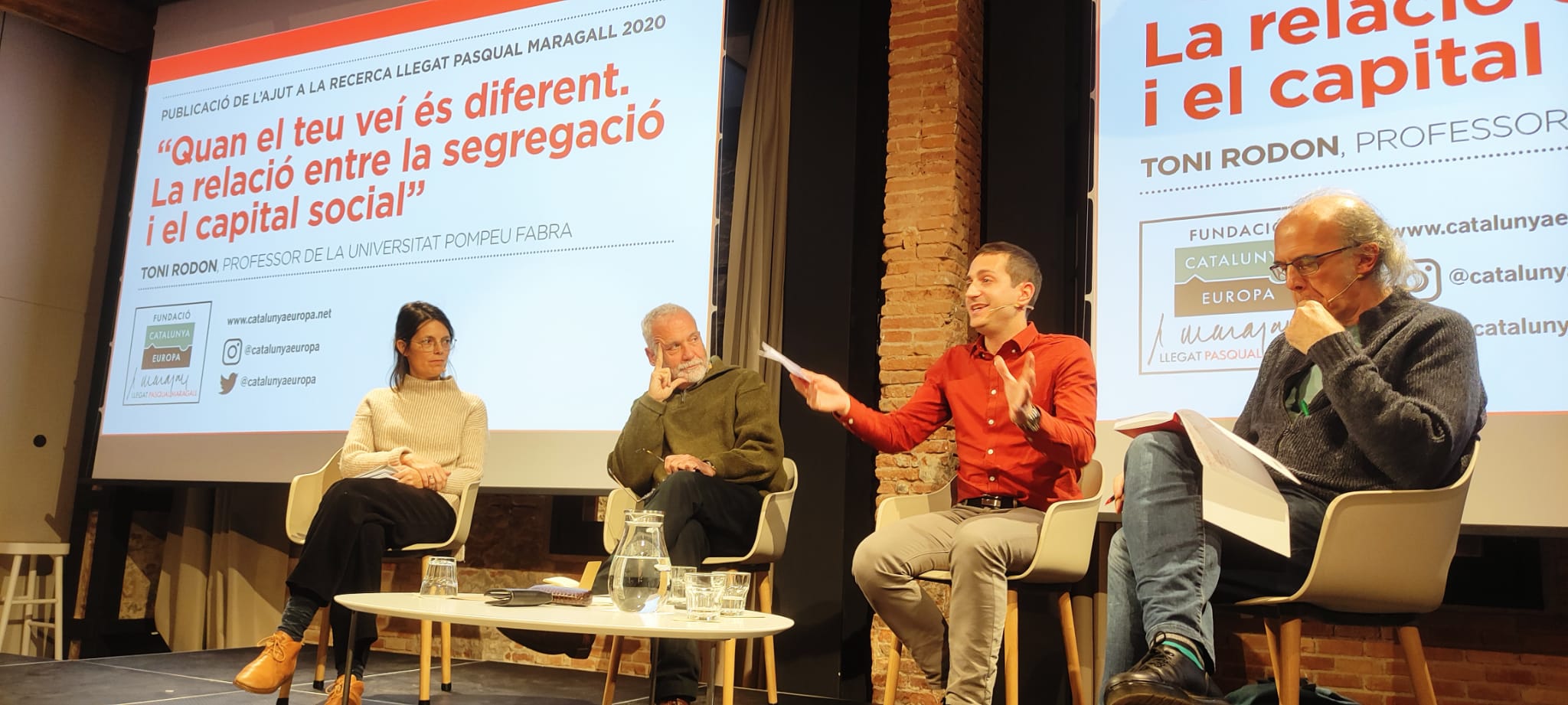 “Quan el teu veí és diferent. La relació entre la segregació i el capital social”. Aquest és el títol de l’estudi que l’investigador i professor a la Universitat Pompeu Fabra, Toni Rodon, ha elaborat com a guanyador del Premi Ajut a la Recerca Llegat Pasqual Maragall 2020, que impulsa la Fundació Catalunya Europa amb la col·laboració de l’Ajuntament de Barcelona i la Generalitat de Catalunya en el marc del Programa Llegat Pasqual Maragall, que té per objectiu promoure el pensament i l’obra de Pasqual Maragall, des d’una visió històrica i contemporània, al voltant dels reptes de les ciutats i d’Europa.